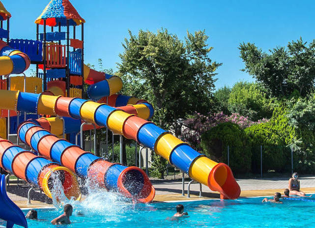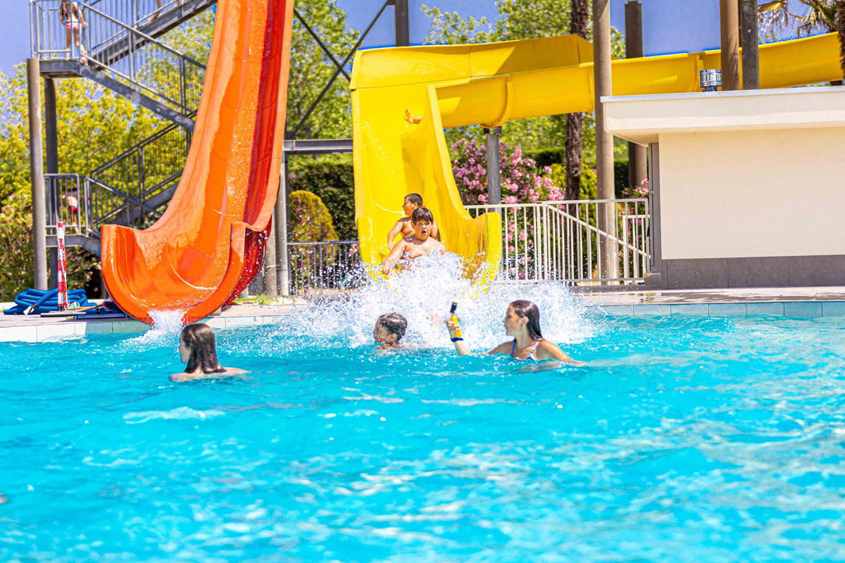 4 venkovní bazény se skluzavkami a vířivkou (v nízké sezóně 1 vyhřívaný), vodní park Spray Park s fontánami a vodními hrami, fitness centrum, lehátka a slunečníky (na vyžádání)*, tenisové kurty, kurt na padel*, basketbalové, fotbalové a volejbalové hřiště, petanque, minigolf, stolní tenis, lekce jógy*, aerobiku*, pilates*, půjčovna kol*, šlapadel*, loděk*, kajaků* i windsurfů*, od června do začátku září plavecká škola* pro děti od 3 do 12 let, dětský koutek, dětské hřiště i na pláži
