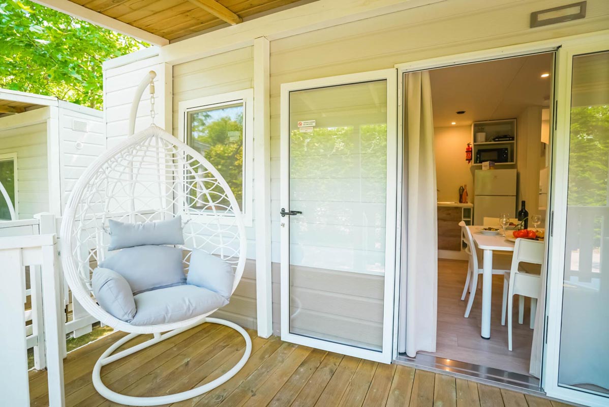 29 m² - ložnice s manželskou postelí, 2 ložnice se 2 samostatnými lůžky, obývací pokoj s kuchyňským koutem, sociální zařízení se sprchou, částečně zastřešená dřevěná terasa s venkovním posezením