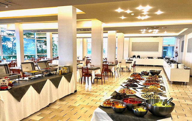 formou servírovaného bufetu, neomezené množství čepované vody a vína; ostatní nápoje za poplatek
