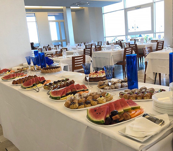 recepce, bar, restaurace, společenská místnost s TV, dětský koutek, animační programy na pláži, výtah, vyhrazené parkoviště (přímo u hotelu či ve vzdálenosti přibližně 500 m, počet míst omezen), wi-fi připojení k internetu