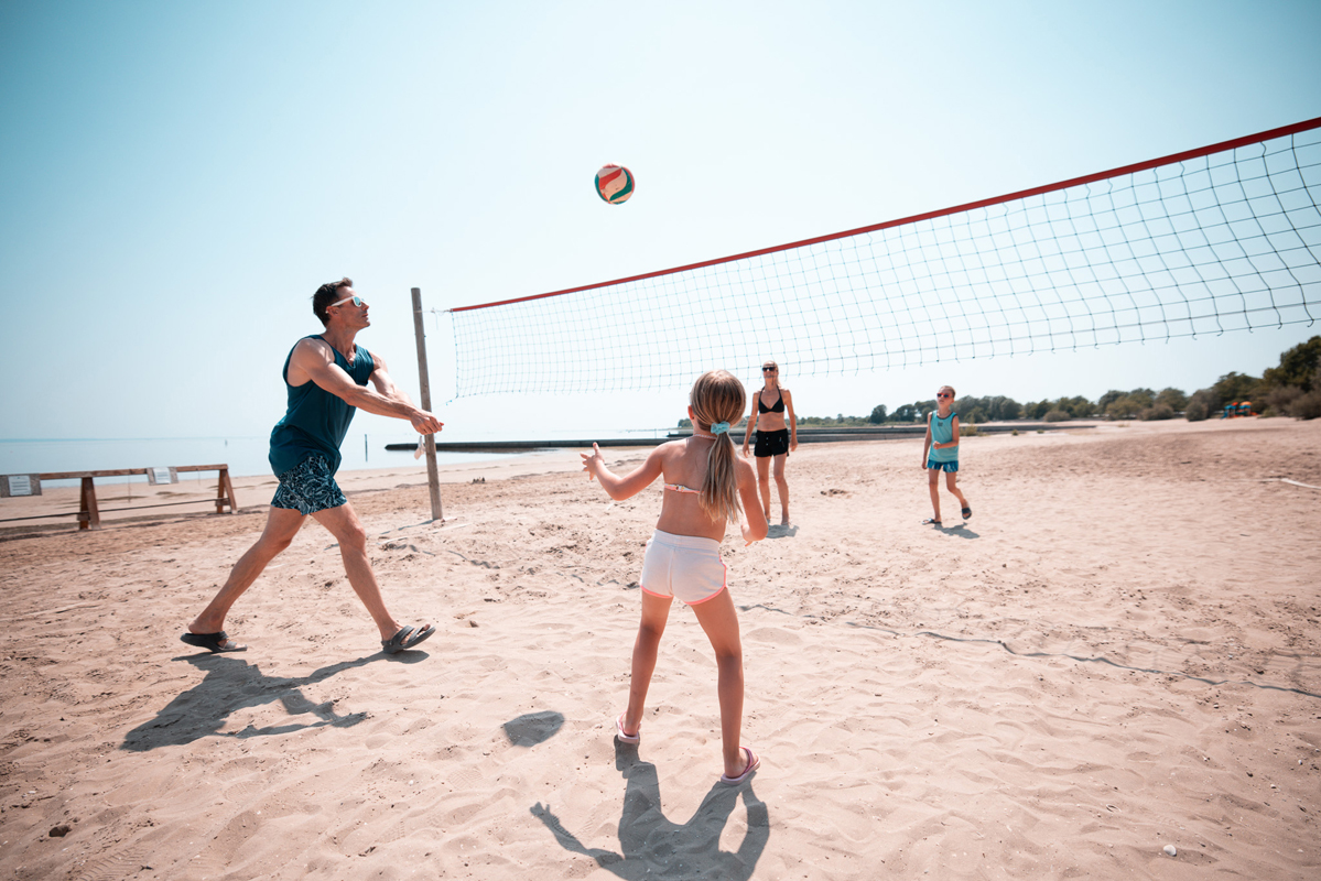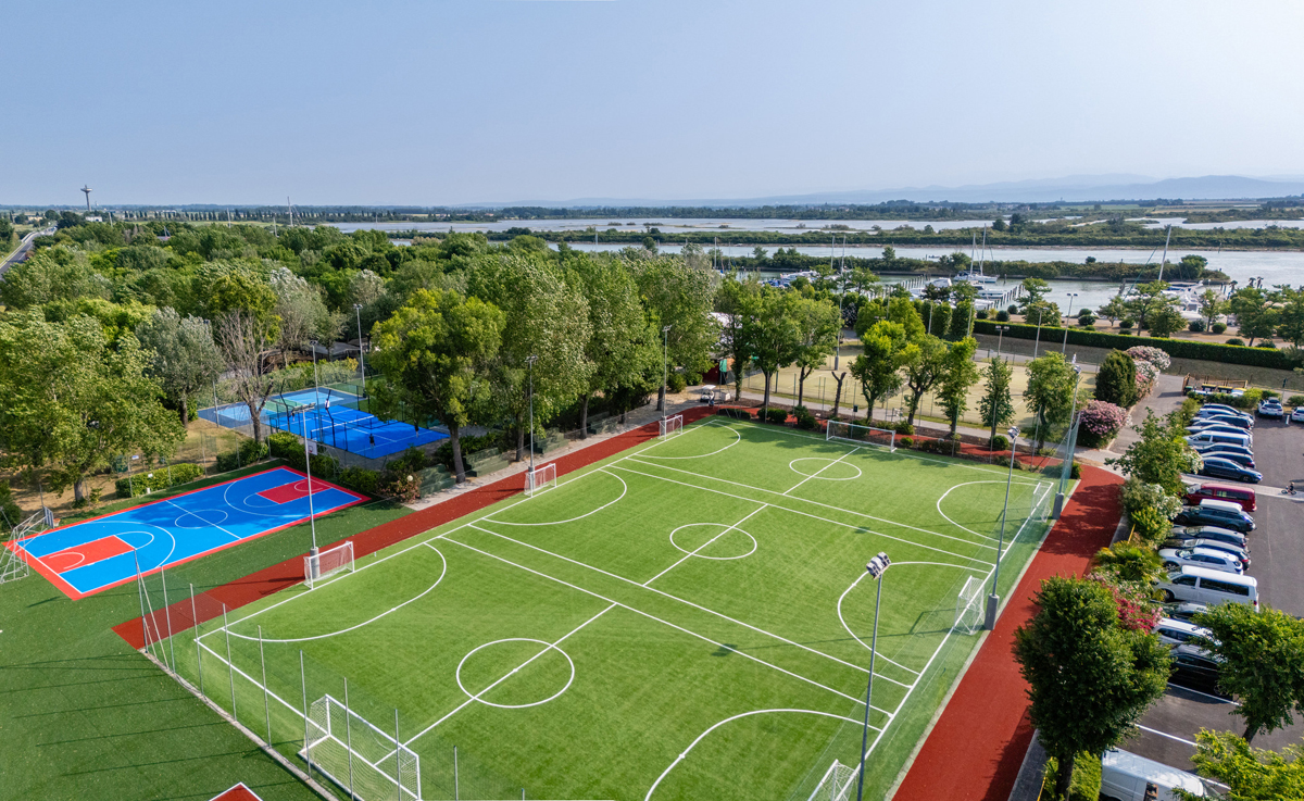 bazén pro dospělé s vířivkou a dětský bazén (přibližně od konce května do poloviny září), tenisové kurty, fotbalové hřiště, hřiště na volejbal, basketbal, padel, skate park, plážový volejbal, půjčovna kol* a elektrických kol*, plážový servis*, vodní sporty*, vodní skákací park; golfové hřiště* (18 jamek), jachtový přístav s půjčovnou motorových člunů*