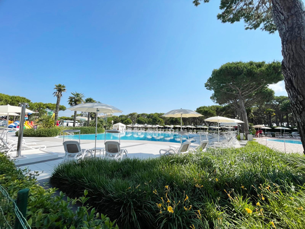 kemp s pěkným bazénovým komplexem nedaleko známého letoviska Lido di Jesolo