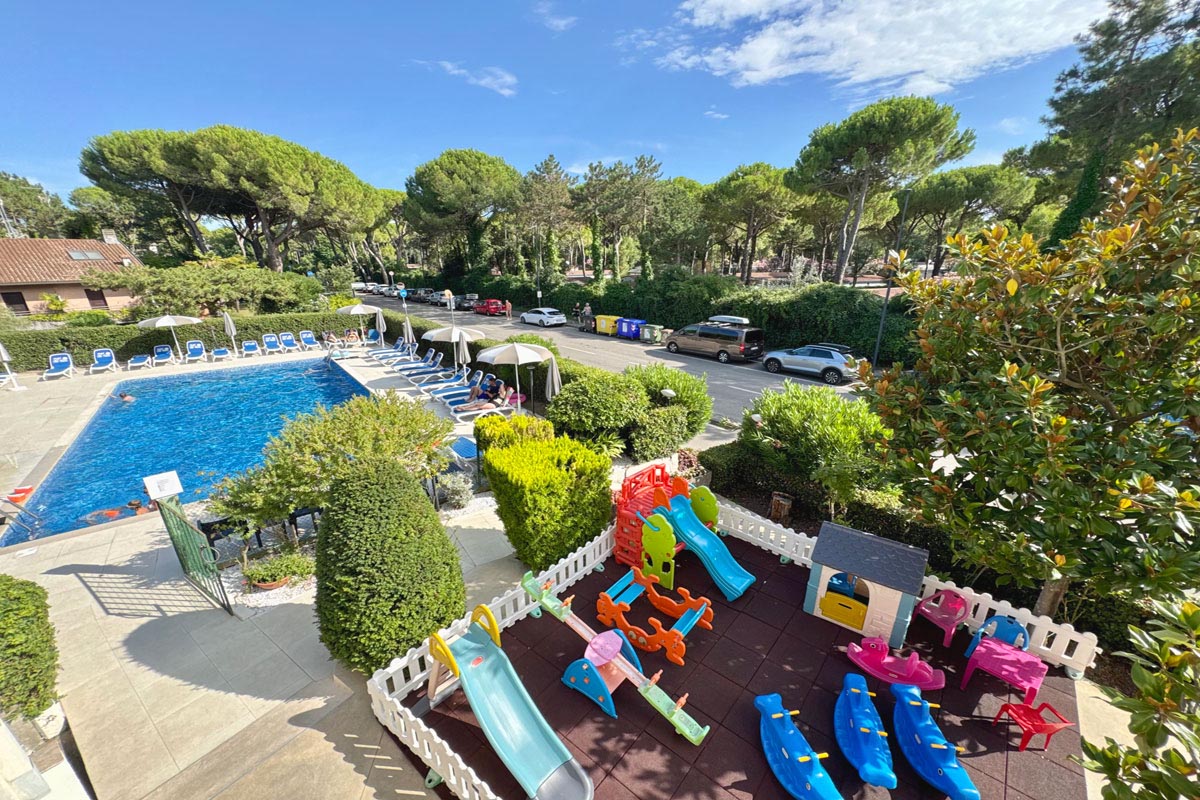 recepce / lobby, restaurace, bar, televizní místnost, výtah, dětské hřiště, střešní terasa s lehátky, slunečníky, sprcha, venkovní terasa s posezením, vyhrazené parkoviště (počet míst omezen), Wi-Fi připojení k internetu, většina společných prostor hotelu je klimatizovaná