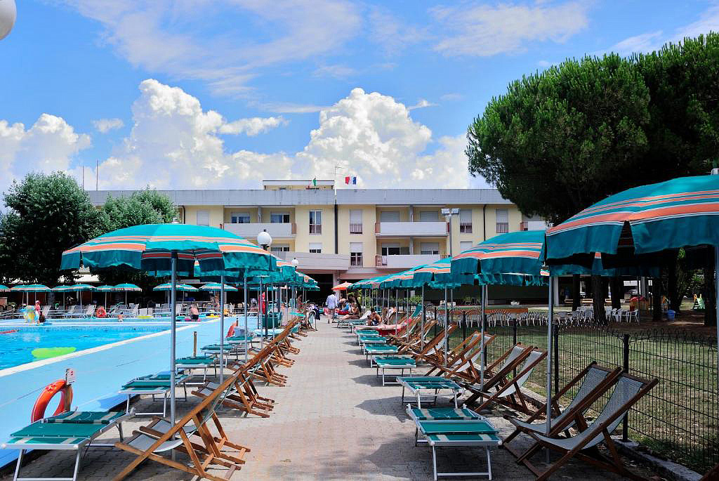 bazén 25 x 10 m se slunečníky a lehátky (1 slunečník + 2 lehátka / apartmán), dětský bazén 10 x 5 m, tenis, stolní tenis, půjčovna jízdních kol*