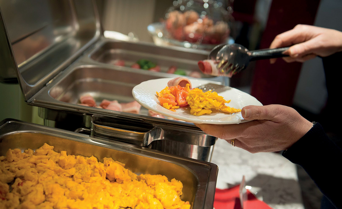 zpravidla servírované, výběr z menu, předkrmy a saláty formou bufetu; nápoje za poplatek