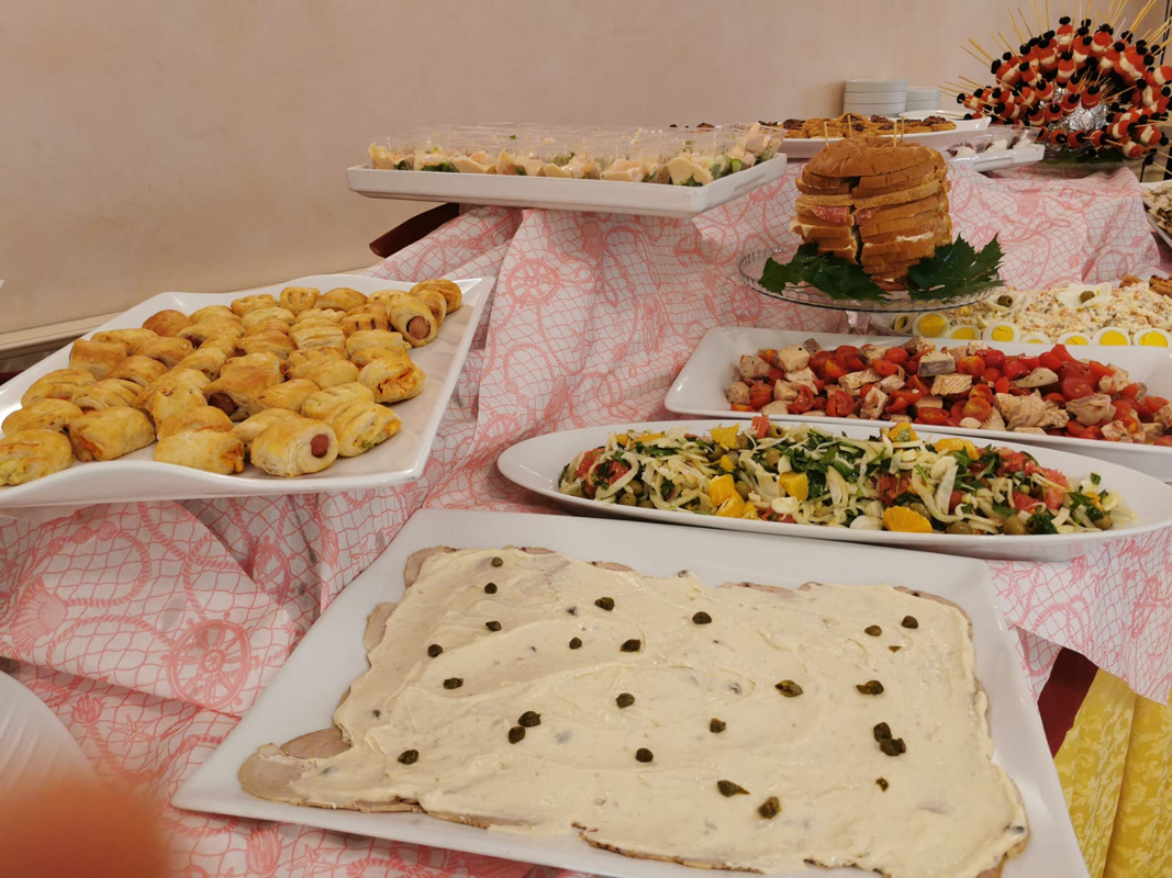 oběd - zpravidla formou bufetu, neomezené množství čepované vody, vína a nealka; ostatní nápoje za poplatek