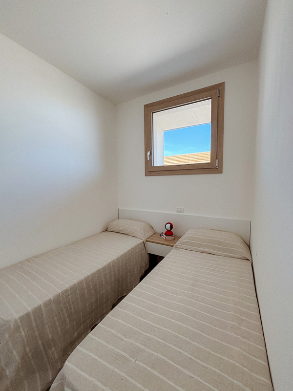 trilo 5 - 1 ložnice s manželskou postelí, 1 ložnice se 2 samostatnými lůžky, obývací pokoj s kuchyňským koutem a gaučem pro 1 osobu, sociální zařízení se sprchou, terasa