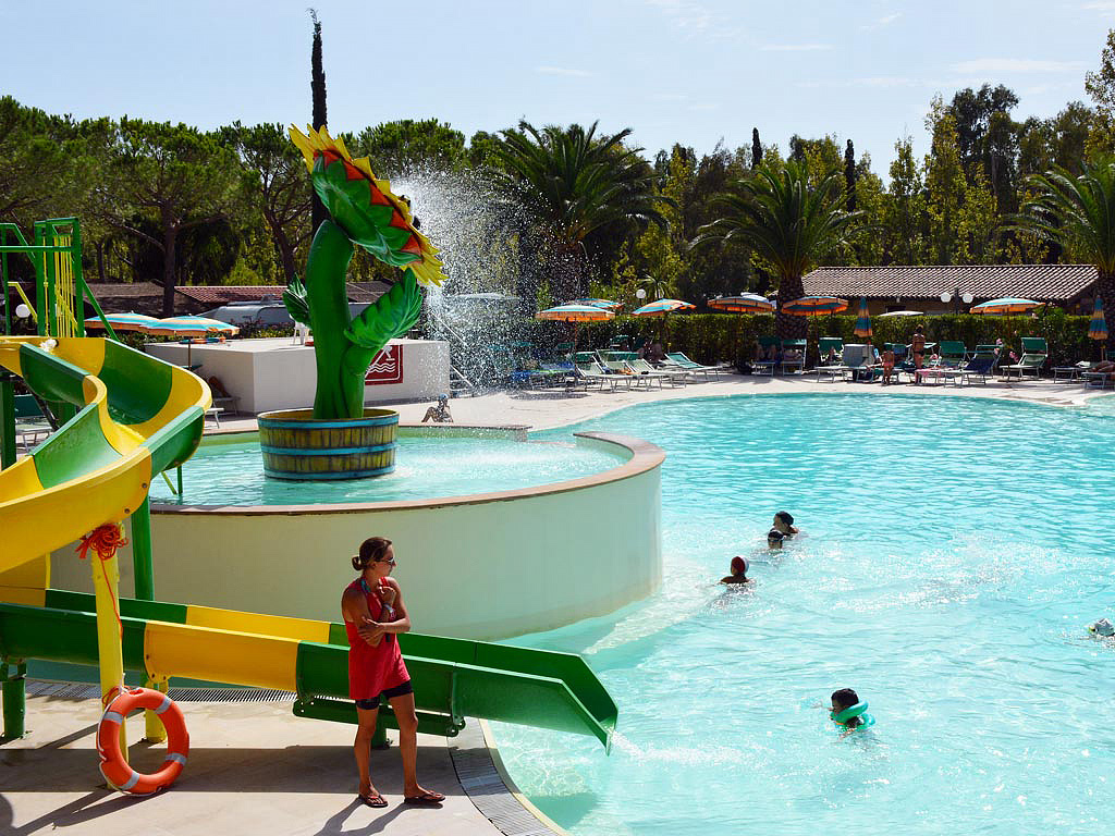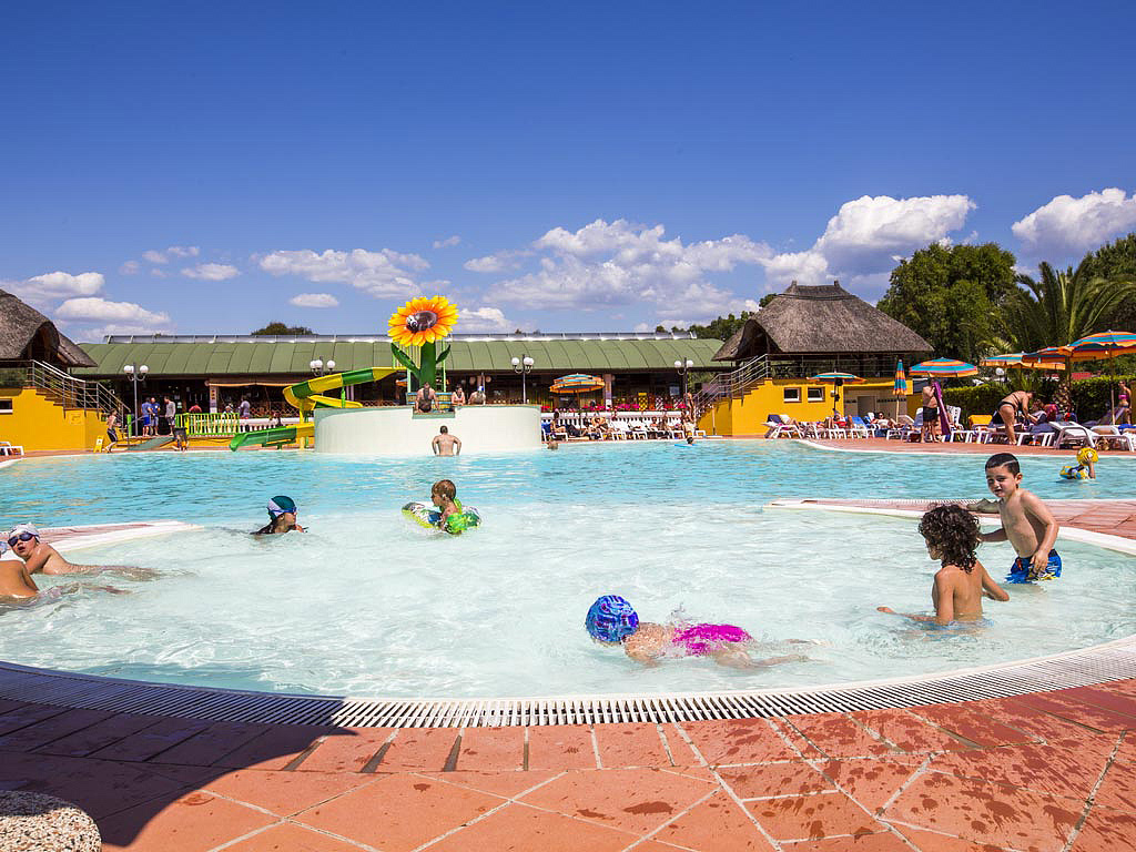 recepce, restaurace / pizzerie / bar, dětské hřiště, animační programy# (cca od poloviny června do konce srpna), plážový minibus* (v určených termínech a hodinách), vyhrazené parkovací stání na parkovišti vedle kempu, minimarket, wi-fi připojení k internetu (časově omezeno)