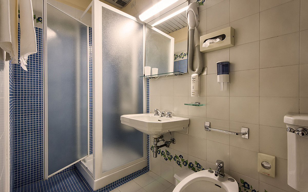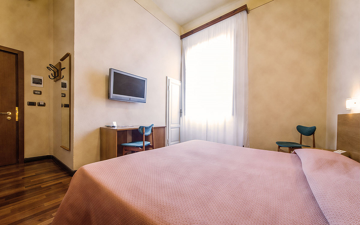 pokoj s manželskou postelí či 2 samostatnými lůžky, sociální zařízení se sprchou či vanou; 3. lůžko formou přistýlky; balkon* (na vyžádání)