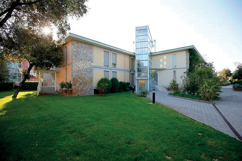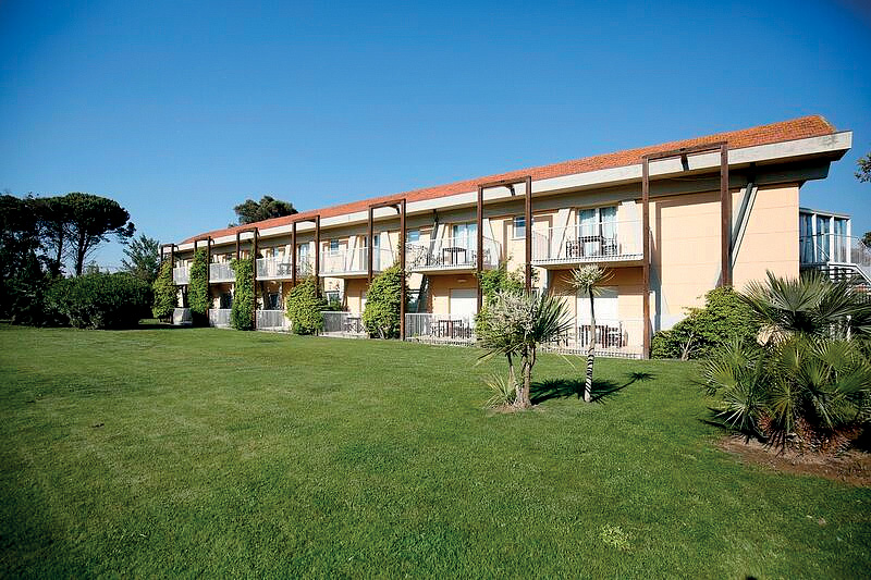 komplex několika moderních budov v rozlehlém a udržovaném parku s bazény nedaleko pláže