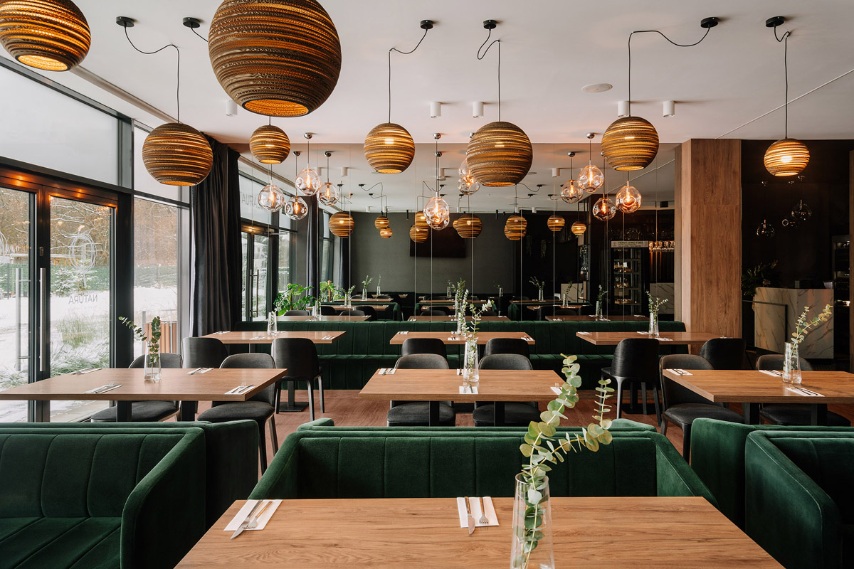 moderní resort se skládá ze dvou budov – Morze (moře) a nově otevřené Las (les); budova Morze tvoří srdce resortu s kompletním zázemím pro relaxaci a zábavu; wellness zónu a Spa (včetně bazénů), posilovnou, restaurací a ohništěm; budova Les nabízí prostorné apartmány a pokoje i konferenční prostory