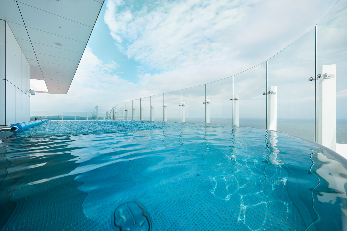 Infinity střešní bazén (v provozu jen v letní sezóně), vířivka, parní lázeň, finská sauna, infrasauna, tepidarium, relaxační místnost, nadstandardně vybavené fitness centrum se stroji pro posilování, biliard*, masáže*, kosmetické služby a procedury*