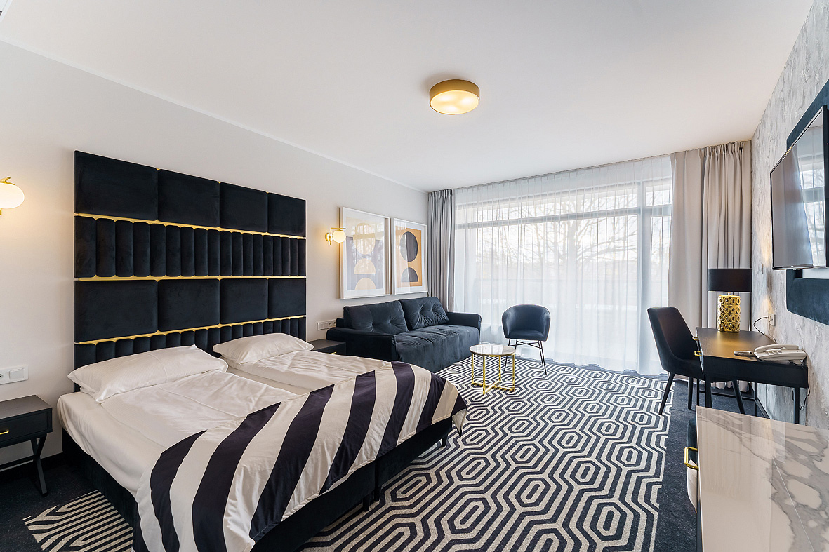 29 m² - pokoj s manželskou postelí či 2 samostatnými lůžky a možností rozkládacího gauče pro 1 osobu, sociální zařízení, balkon