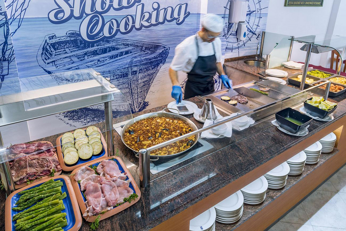 formou bohatého mezinárodního bufetu; nápoje za poplatek