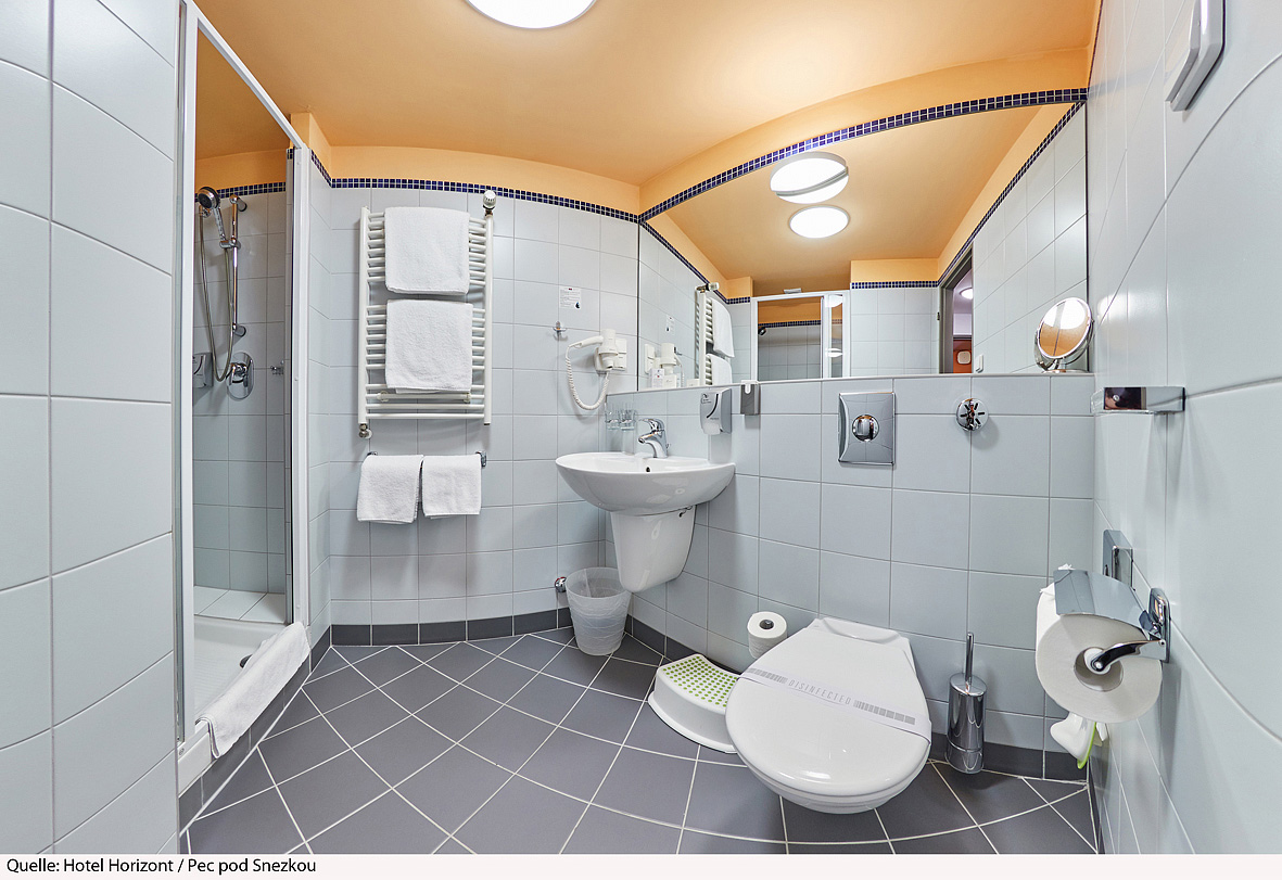 pokoj s manželskou postelí či 2 samostatnými lůžky s možností přistýlky pro dítě do nedovršených 15 let, sociální zařízení se sprchou