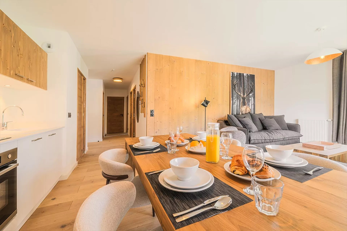 77 m² - 1 ložnice s manželskou postelí, 2 ložnice se 2 samostatnými lůžky, obývací pokoj s kuchyňským koutem a rozkládacím gaučem pro 2 osoby (možno i typ "šuplík"), 3x sociální zařízení se sprchou či vanou, balkon