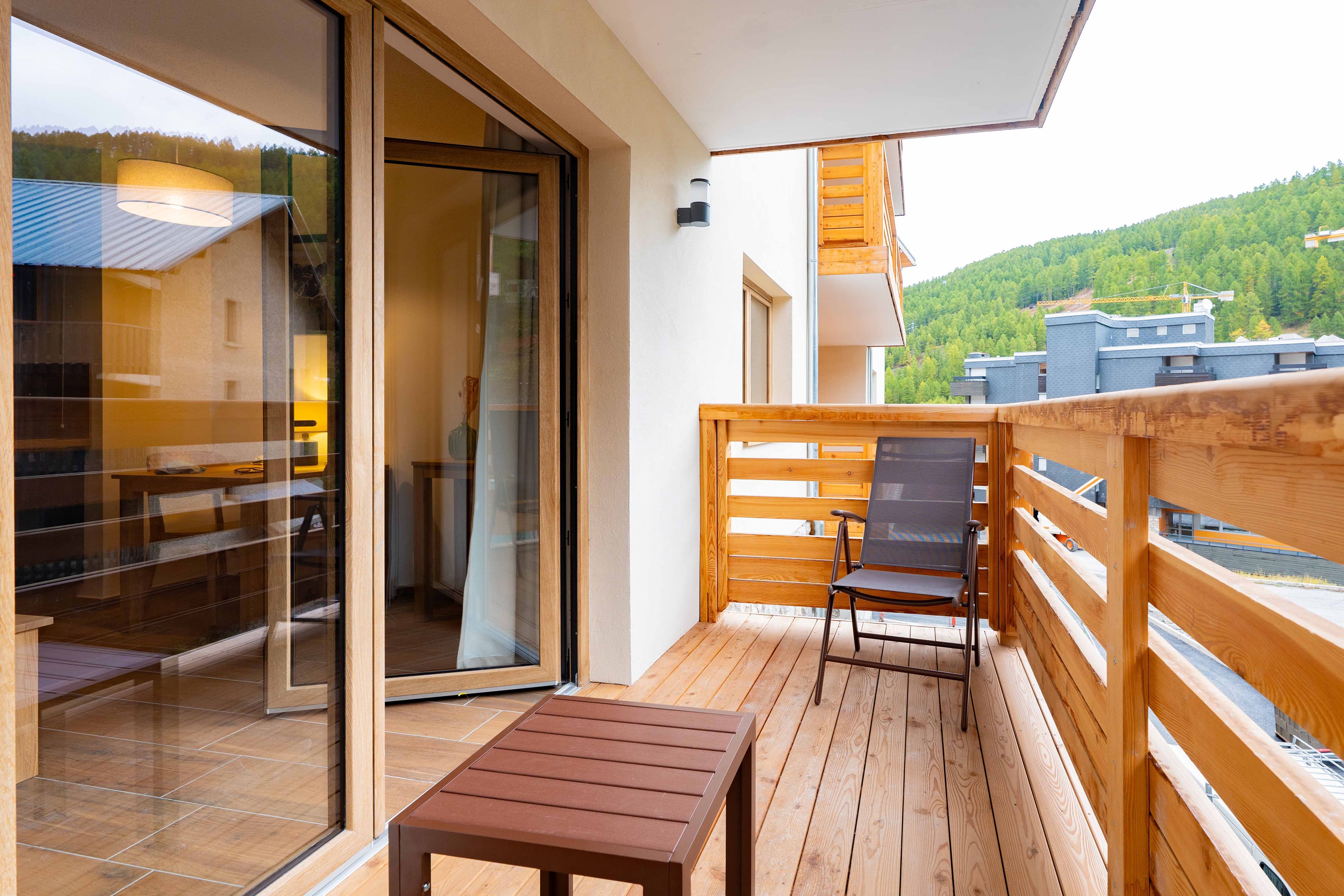 28 m² - 1 ložnice s manželskou postelí či 2 samostatnými lůžky, obývací pokoj s kuchyňským koutem a rozkládacím gaučem pro 2 osoby (možno i typ "šuplík"), sociální zařízení, balkon