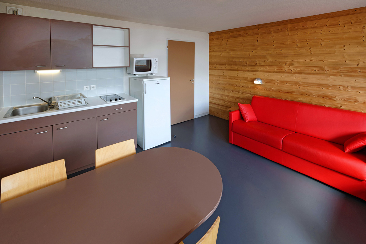 25 m² - obývací pokoj s kuchyňským koutem a rozkládacím gaučem pro 2 osoby (možno i typ "šuplík"), sociální zařízení s vanou