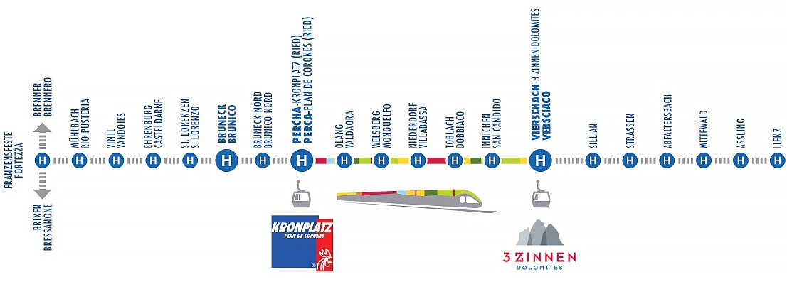 výborná dostupnost lyžování díky zastávce skivlaku Ski Pustertaler Express jen pár kroků od residence aneb do 15 minut na sjezdovce