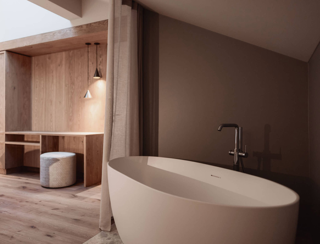 bilo 3+2 Rooftop Suite Lilium - 80 m² - 1. podlaží apartmánu: 1 ložnice s manželskou postelí, samostatnou vanou a případně přistýlkou, obývací pokoj s kuchyňským koutem a rozkládacím gaučem (boxspring) pro 1 osobu, sociální zařízení se sprchou, balkon; 2 podlaží apartmánu: vyvýšené neuzavřené patro s 1 samostatným lůžkem pro 1 dospělou osobu či 2 děti; maximální obsazenost apartmánu jsou 3 dospělé osoby a 2 děti do nedovršených 18 let; uvedená plocha je včetně balkonu