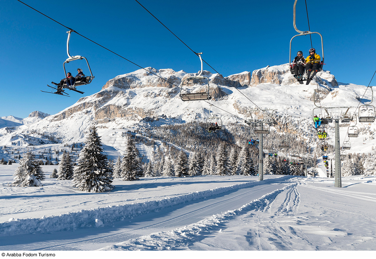 platí pro skiareál Arabba / Marmolada, tedy pro všechna přepravní zařízení označená ve skimapě číslem; z důvodu napojení střediska na Sella Rondu a jen o málo nižší ceny oproti skipasu Dolomiti Superski není zprostředkováván CK