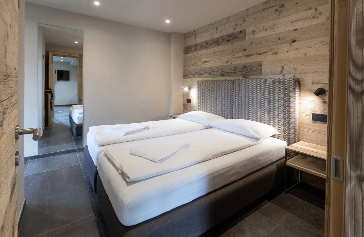 16 m² - pokoj s manželským lůžkem či 2 samostatnými lůžky, sociální zařízení se sprchou; apartmán se nachází v přízemí a je bez kuchyňského koutu a balkonu či terasy; doporučujeme zakoupit spolu s jinou typologií apartmánu