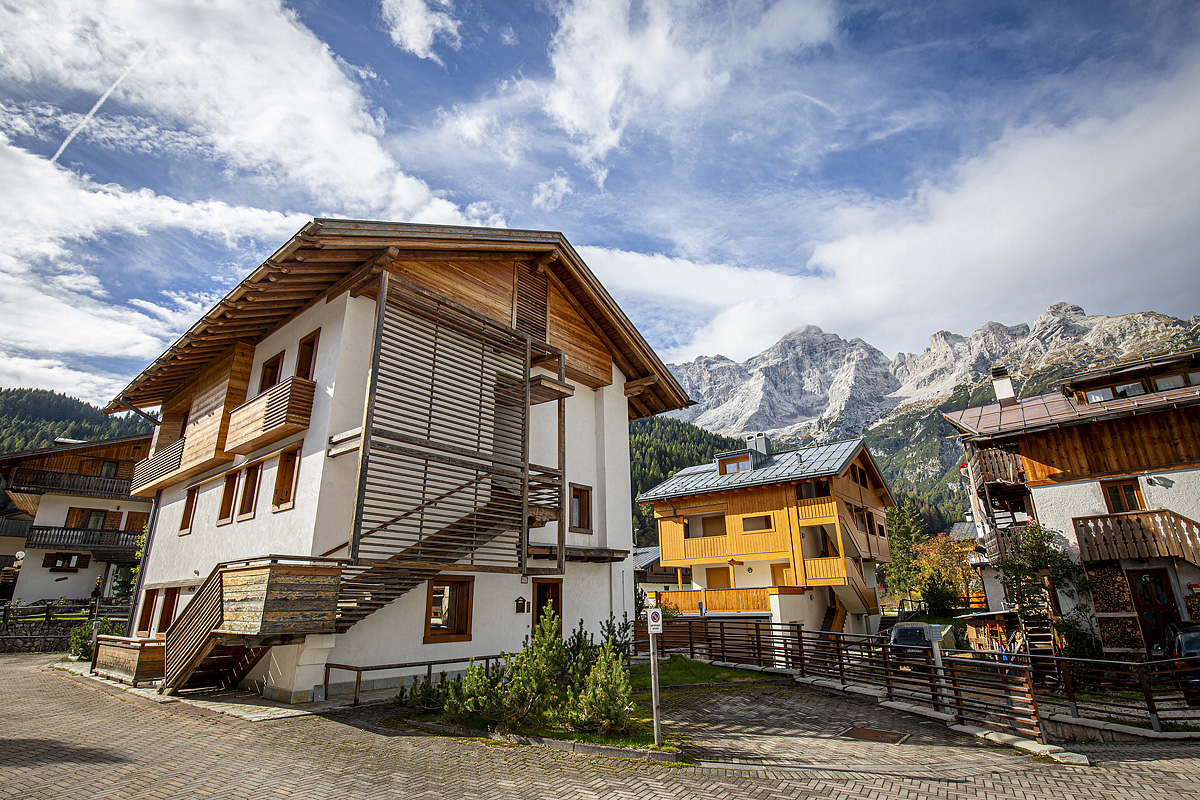 Val di Zoldo - lokalita Pecol, centrum - 0 m, skiareál Civetta - 400 m