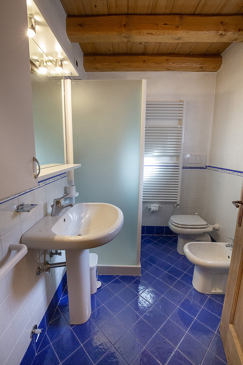 trilo 6 – přízemí apartmánu: obývací pokoj s kuchyňským koutem a rozkládacím gaučem pro 2 osoby, sociální zařízení se sprchou, předzahrádka, 1.podlaží apartmánu: 1 ložnice s manželskou postelí, 1 ložnice se 2 samostatnými lůžky, sociální zařízení se sprchou