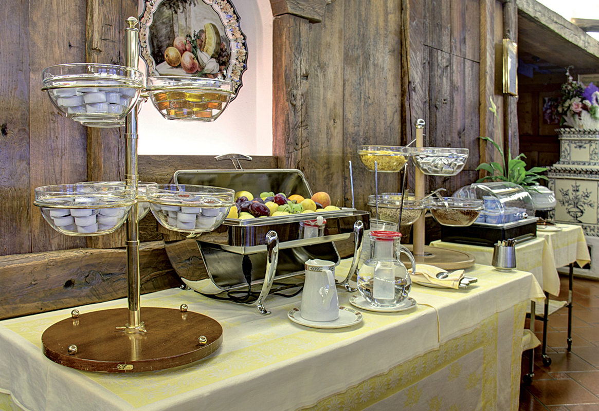 servírované menu s výběrem ze 4 studených a teplých předkrmů, 3 až 4 hlavních jídel s přílohou a 3 dezertů, nápoje za poplatek; 1x týdně typická večeře