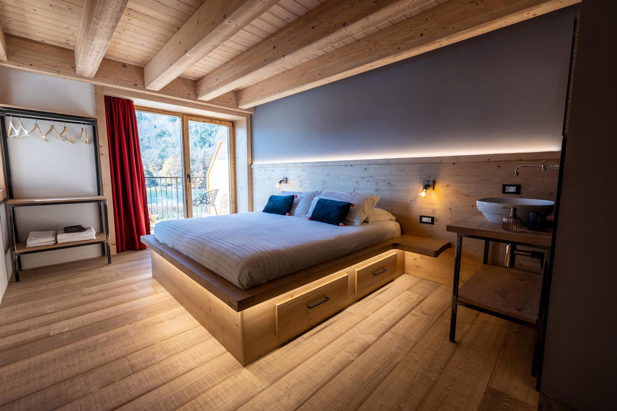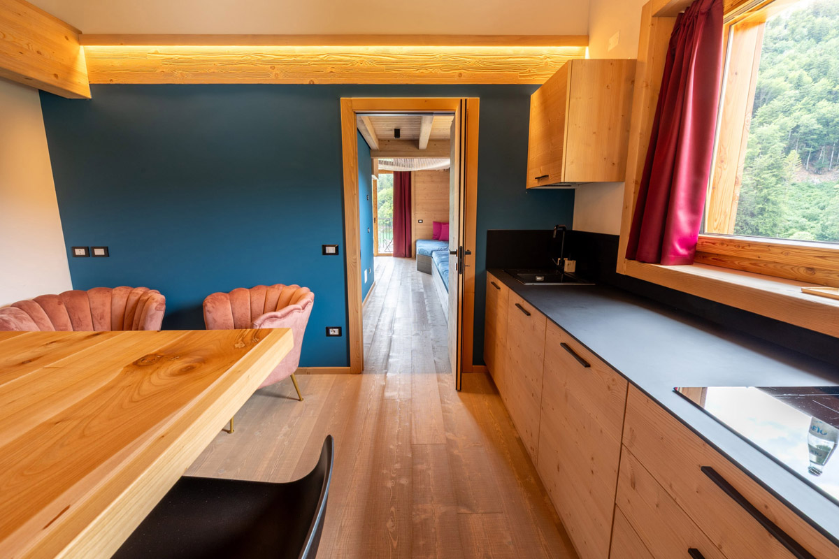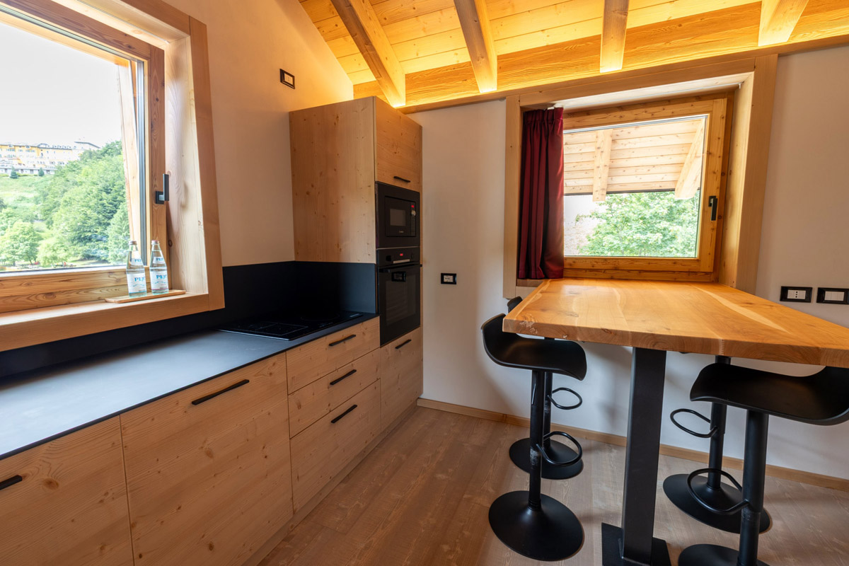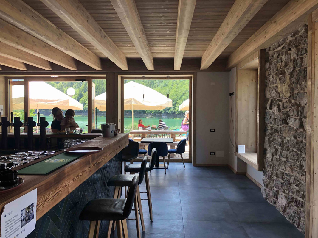 krásně architektonicky řešený malý aparthotel s romantickou pozicí na břehu jezera Lavarone