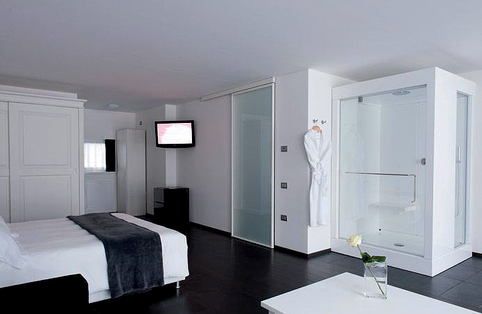42 m² - pokoj s manželskou postelí a rozkládacím gaučem pro 1 či 2 osoby, atypické sociální zařízení zpravidla s kombinovanou sprchou / párou či velkou vanou přímo v rámci ložnice, terasa či předzahrádka, samostatný vstup; minimální obsazenost 3 plně platící osoby, maximální obsazenost 3 dospělí a 1 dítě do nedovršených 13 let