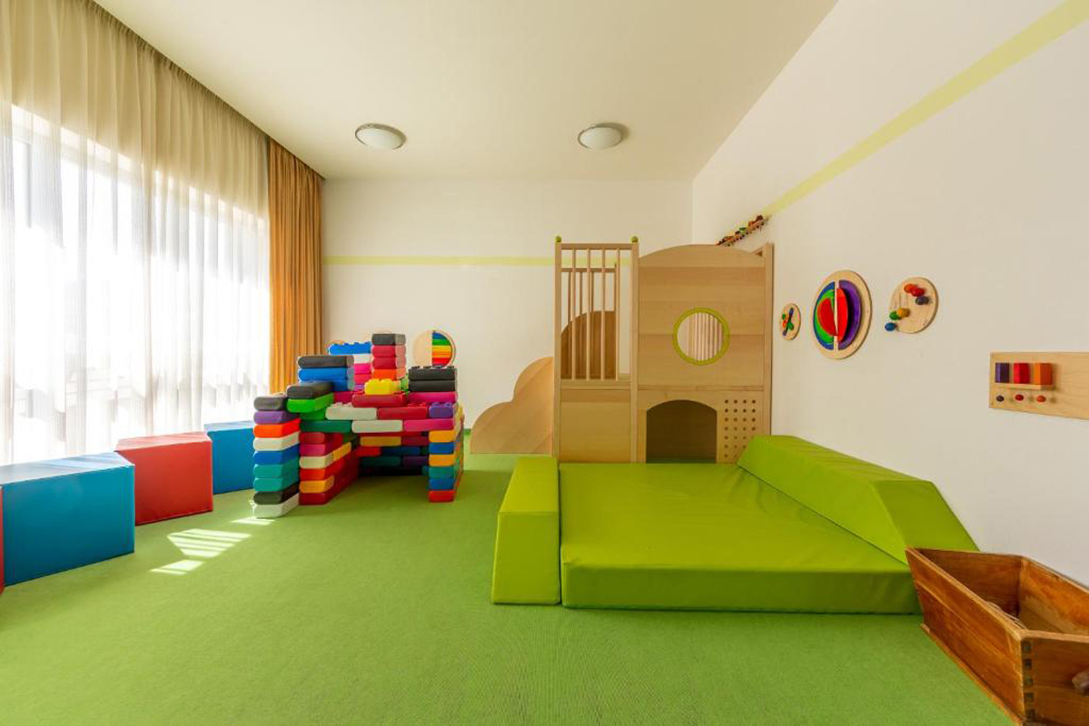 recepce / lobby, restaurace, bar, společenská místnost, velká dětská herna, malá kuchyň pro přípravu dětských jídel, služby hotelové prádelny*, místnost pro úschovu zavazadel, trezor na recepci, wi-fi připojení k internetu úschovna lyží a lyžařských bot, výtah, velká panoramatická sluneční terasa, zahrada, vyhrazené parkoviště / nabíjecí stanice* (pomalé do 22 kW)