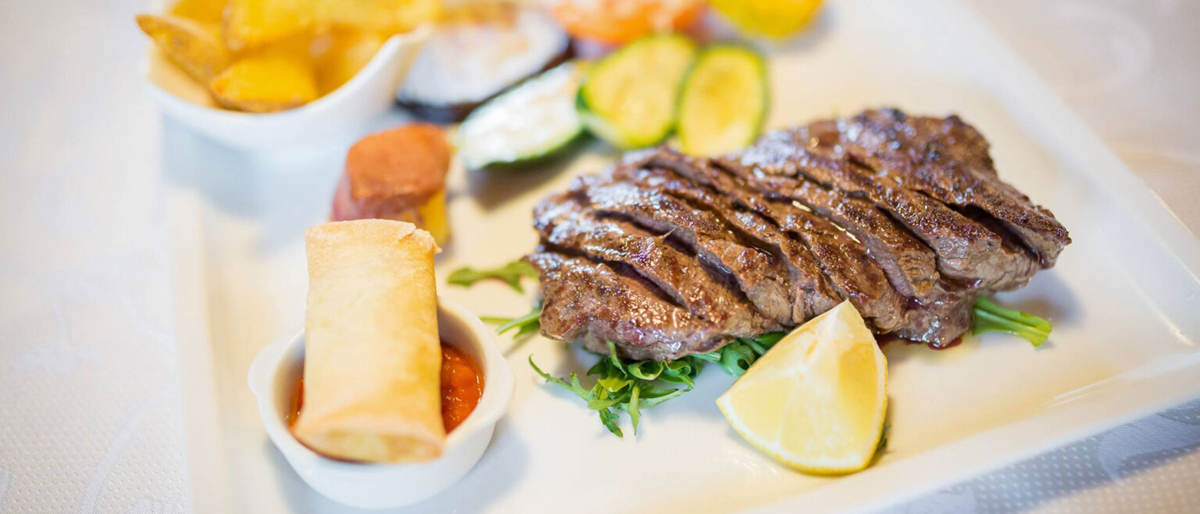 servírované menu s výběrem ze 2 až 3 studených či teplých předkrmů a 2 až 3 hlavních jídel s přílohou, salátový bufet, servírovaný dezert, nápoje za poplatek; 1x týdně typická večeře