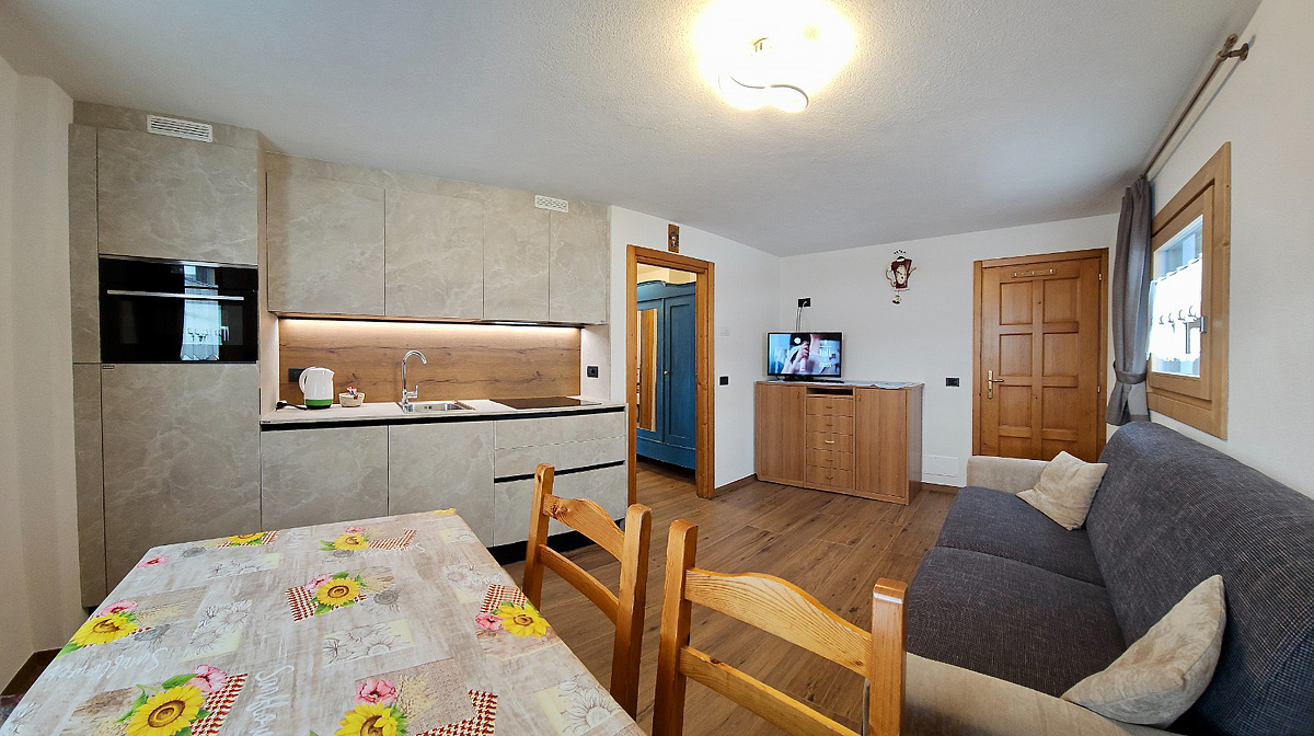 nově zrekonstruovaný apartmán; 1 ložnice s manželskou postelí, obývací pokoj s kuchyňským koutem a rozkládacím gaučem pro 2 osoby, sociální zařízení se sprchou; apartmán se nachází v přízemí s balkonem