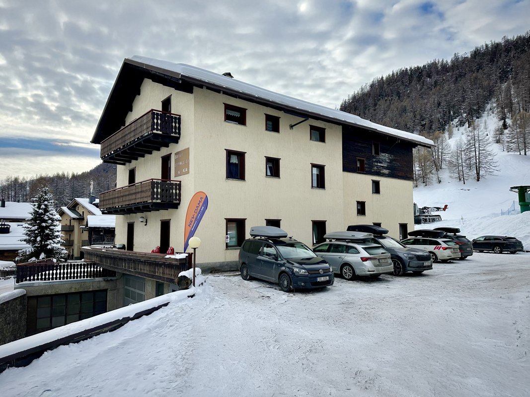 ideální poloha vůči lyžařské nabídce Livigna, na jižním úpatí skiareálu Carosello, nedaleko od bežeckých stop