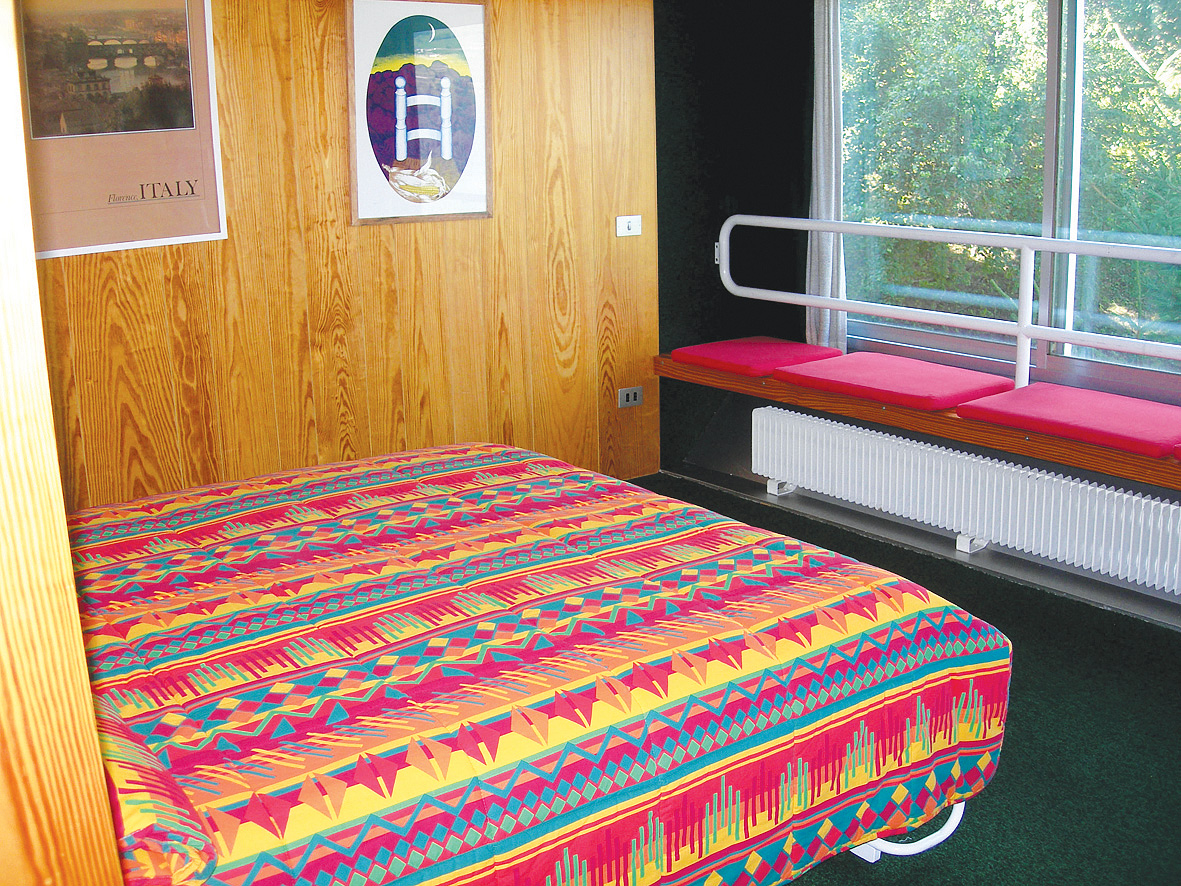 bilo 4 - 36 m² - 1 ložnice s palandou či manželskou postelí zpravidla uzavřená zašupovacími dveřmi typu "harmonika" či oddělená dřevěnou stěnou, obývací pokoj kuchyňským koutem zpravidla částečně odděleným a skříňovou manželskou postelí či rozkládacím gaučem pro 2 osoby (možno i typu šuplík), sociální zařízení s vanou