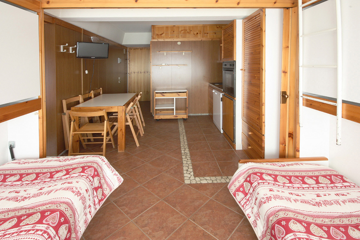 mono 2+1 - obývací pokoj s kuchyňským koutem, zpravidla se skříňovou manželskou postelí a přistýlkou pro 1 osobu, sociální zařízení s vanou; doporučená maximální obsazenost jsou 2 dospělí a 1 dítě do nedovršených 10 let