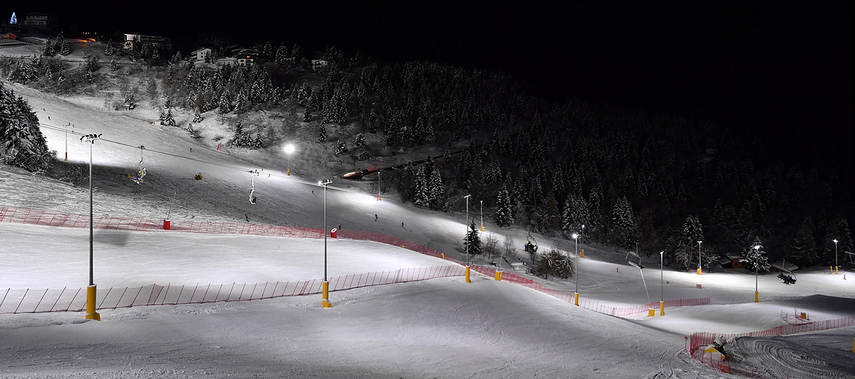 Atraktivní je úterní a čtvrteční noční lyžování s novým osvětlovacím LED systémem na sjezdovkách Cordela, Lavaman, Diagonale Montesel, jakož i ve snowparku.