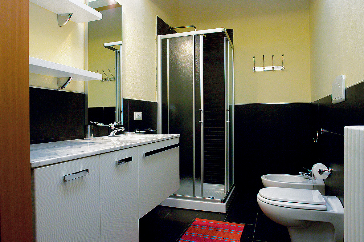 bilo 5/6 - 45 až 53 m² - 1 ložnice s manželskou postelí, obývací pokoj s kuchyňským koutem a rozkládacím gaučem pro 2 osoby či palandou, případné neuzavřené zvýšené patro v rámci obývacího pokoje s manželskou postelí a palandou, sociální zařízení, balkon či vstup na zahradu