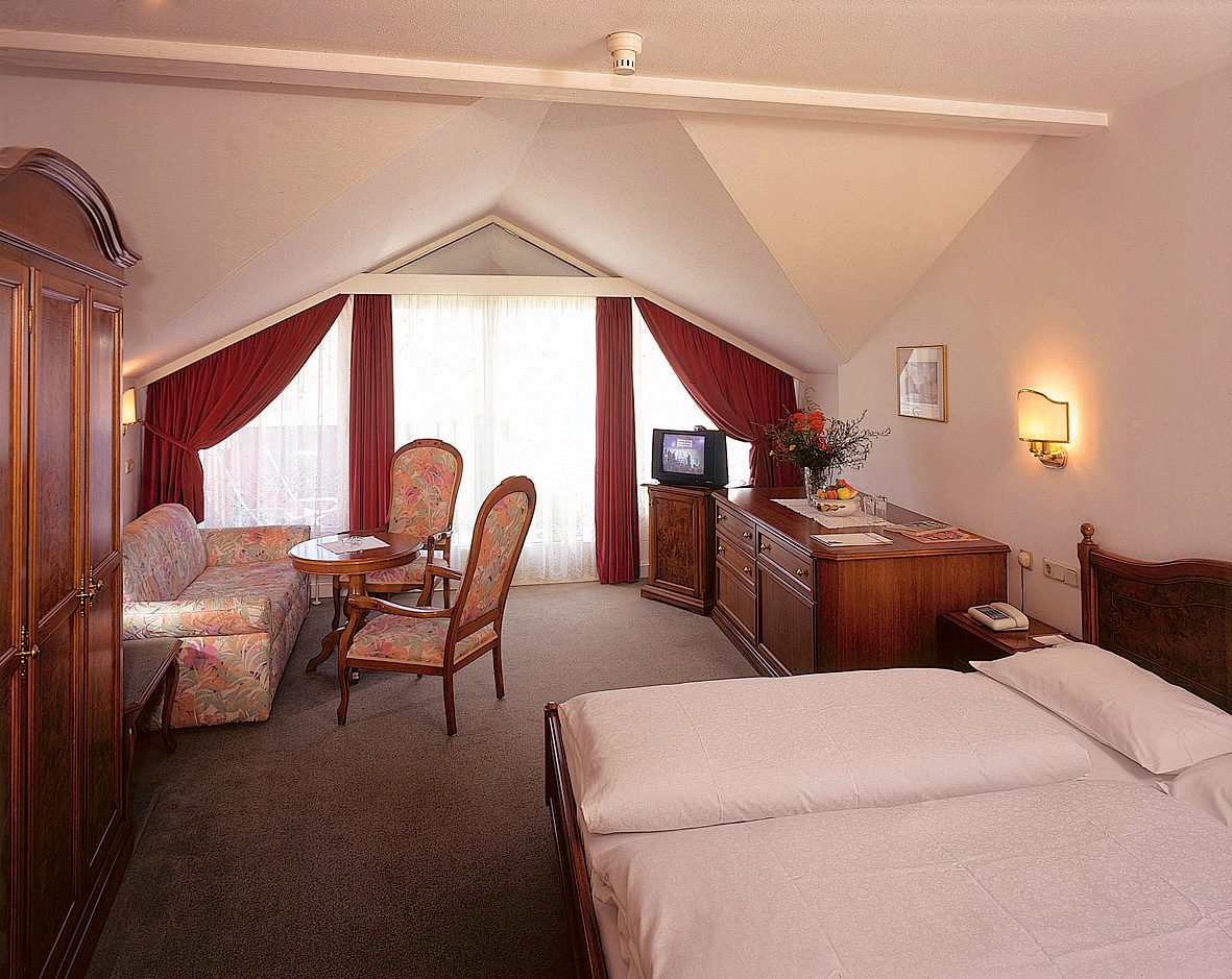 38 m² - pokoj s manželskou postelí a případně rozkládacím gaučem (pro osoby do 13 let) pro 1 či 2 osoby, sociální zařízení se sprchou a vanou, balkon; pokoje po kompletní renovaci vhodné i pro náročné klienty