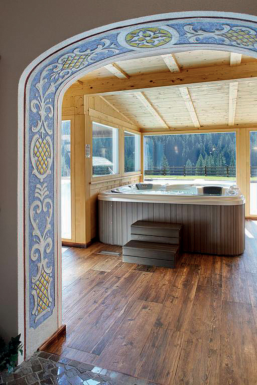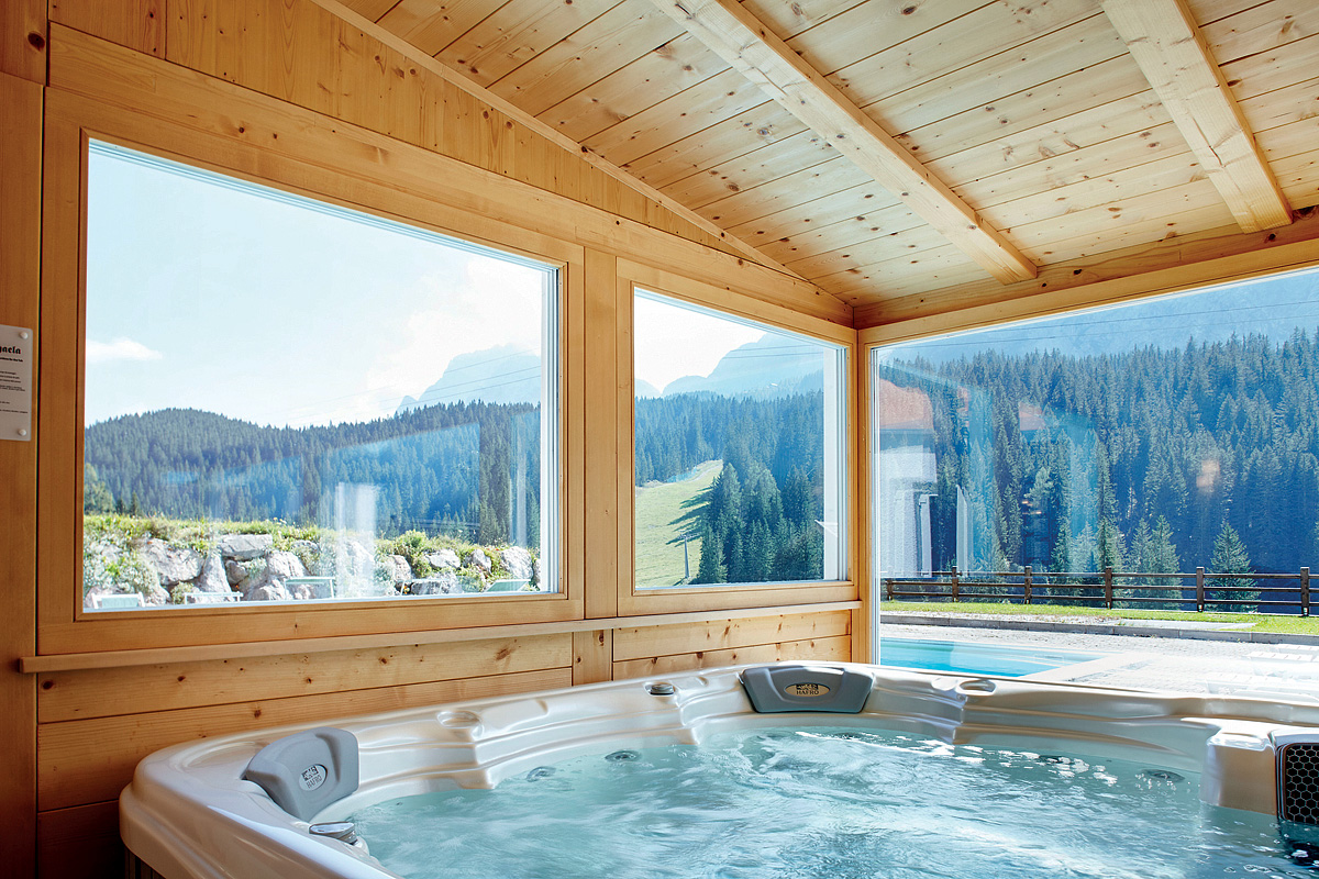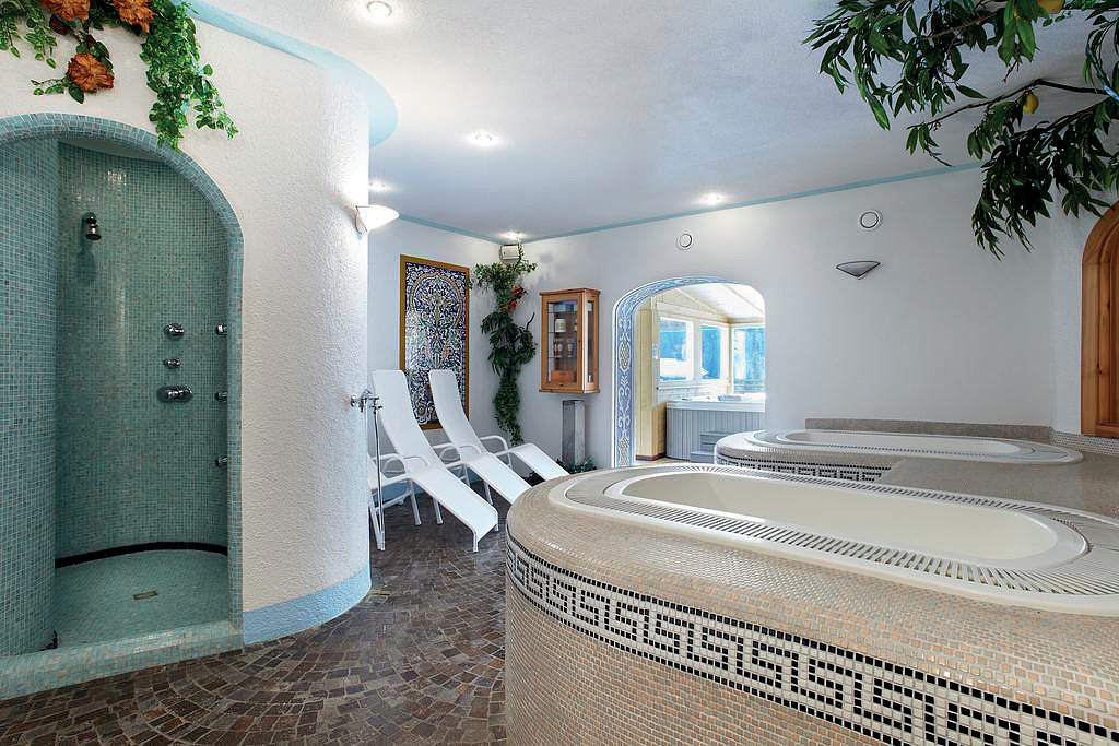 vířivka* až pro 8 osob, 2x vířivka shiatsu#* pro 1 osobu, finská sauna#*, venkovní sibiřská sauna s ledovou ochlazovací stezkou#*, pára#*, hydromasážní sprcha#*, relaxační koutek#* s lehátky, malá posilovna#*, kosmetické služby či masáže*; služby označené # mohou využívat jen osoby od 16 let