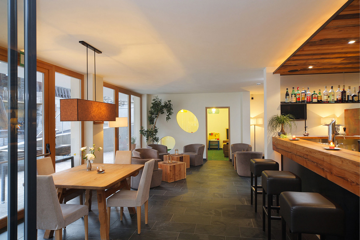 recepce / lobby s wi-fi, restaurace vyhrazená pro hotelové hosty, bar, společenská místnost s TV, panoramatická sluneční terasa s posezením, zahrada s dětským hřištěm, dětský koutek, úschovna lyží a lyžařských bot (vyhřívaný sušák bot), prostor pro úschovu zavazadel, výtah, vyhrazené parkoviště (počet míst omezen, 1 místo / pokoj), služby hotelové prádelny, nabíjecí stanice pro elektroauta, wi-fi připojení k internetu