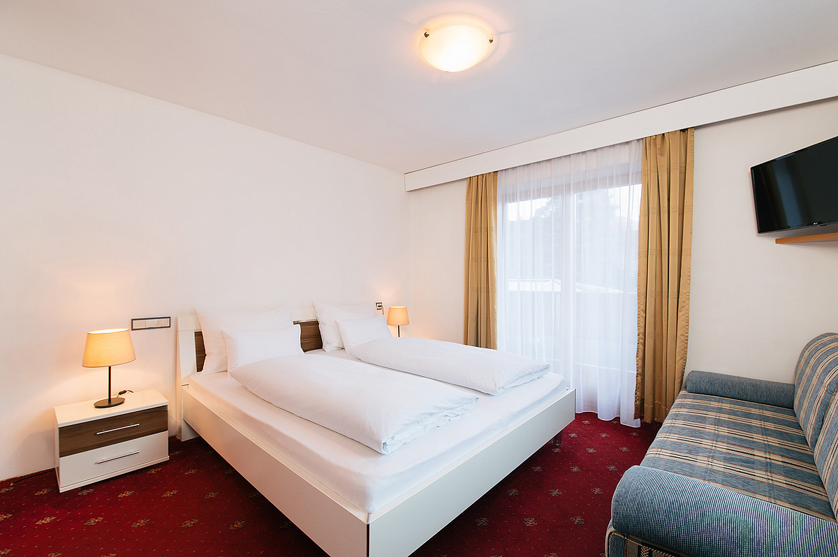 20 až 25 m² - pokoj s manželskou postelí a rozkládacím gaučem pro 1 osobu, balkon