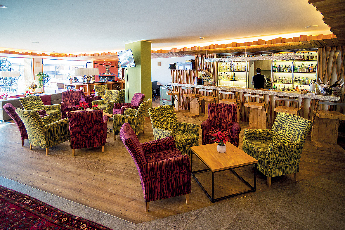 recepce / menší lobby, restaurace vyhrazená pro hotelové hosty, stylová restaurace / bohatá vinotéka (cca 180 druhů vína v cenách za láhev až do 800 €), bar / společenská místnost s TV sat., videem a DVD, wi-fi připojení k internetu, úschovna lyží a lyžařských bot, 3x výtah, vyhrazené parkoviště (počet míst omezen; další parkování v blízkosti), garážová stání*