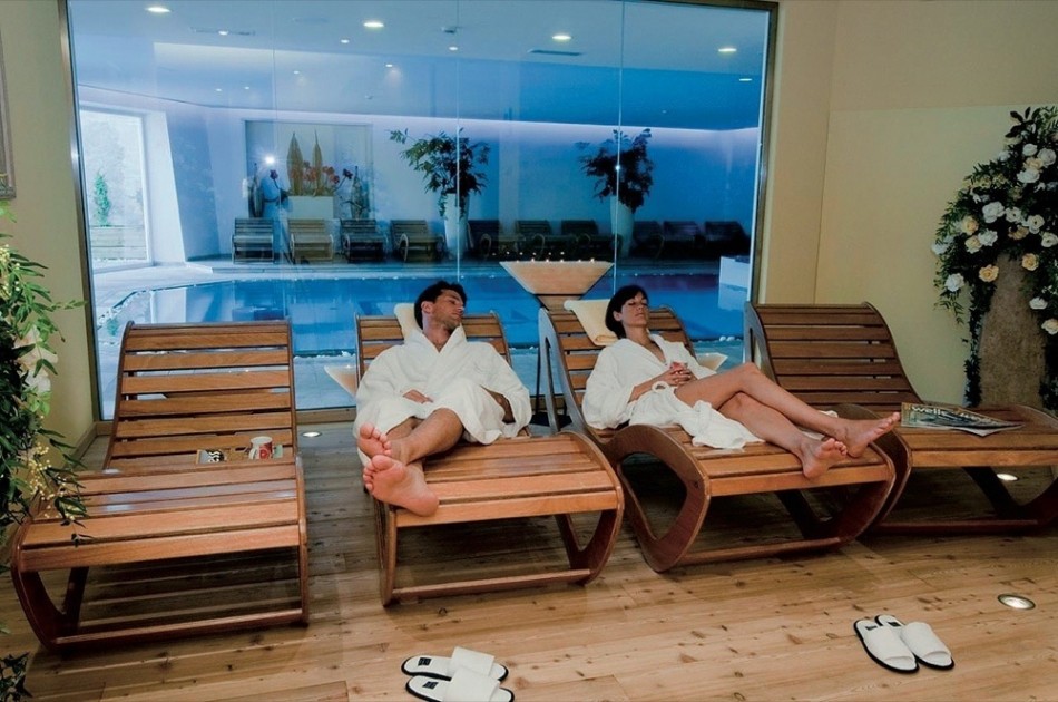 bazén 10 x 5 m s protiproudem, vířivka až pro 8 osob, sauna, pára, termárium, 2x multifunkční sprcha, relaxační koutek s lehátky, kneippův chodník, masáže¹, posilovna; v rámci relaxačního centra jsou zdarma nabízeny též minerální voda a bylinkové čaje