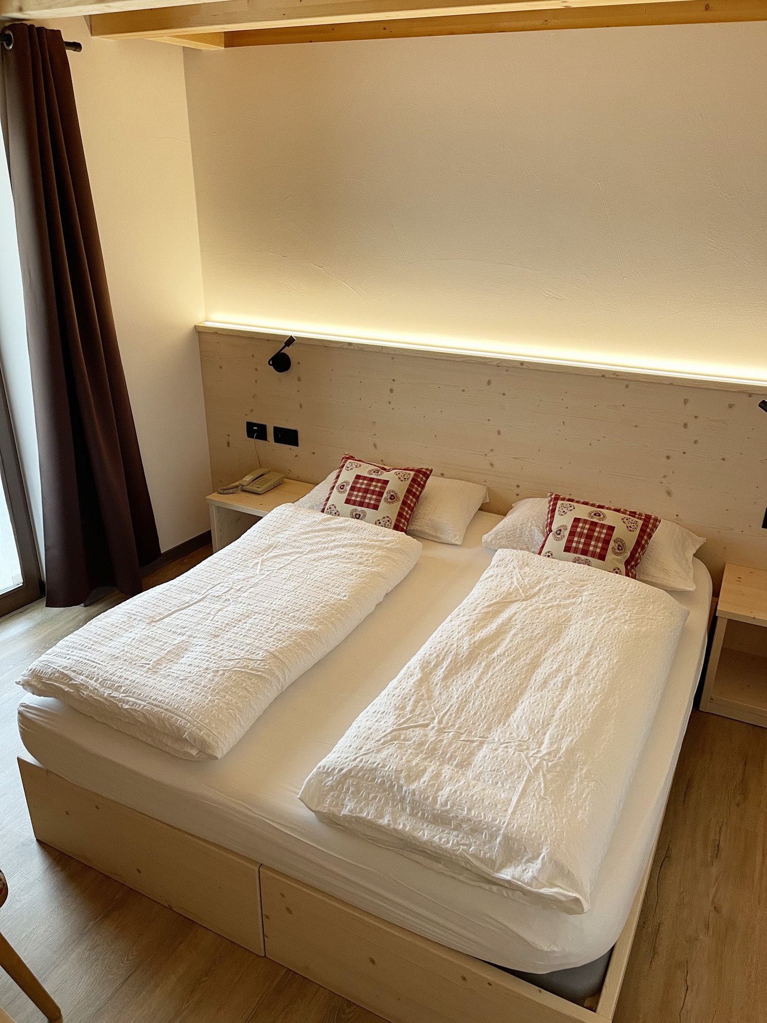 bilo 4/5 - 1 ložnice s manželskou postelí s oddělitelnými lůžky a případně 1 samostatným lůžkem, obývací pokoj s kuchyňským koutem a rozkládacím gaučem pro 2 osoby, sociální zařízení, balkon; některé apartmány jsou situovány v podkroví