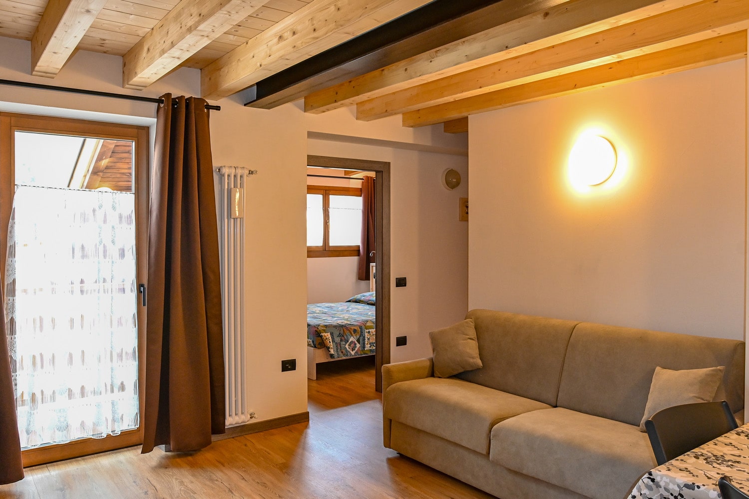 Junior Suite 2/3/2+2 - pokoj s manželskou postelí, obývací pokoj s rozkládacím gaučem na lůžko pro 1 či 2 osoby (o velikosti 1,5 běžného lůžka 140 x 190 cm, vhodný pro 1 dospělou osobu či 2 děti do 12 let), sociální zařízení, balkon či terasa