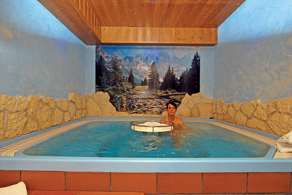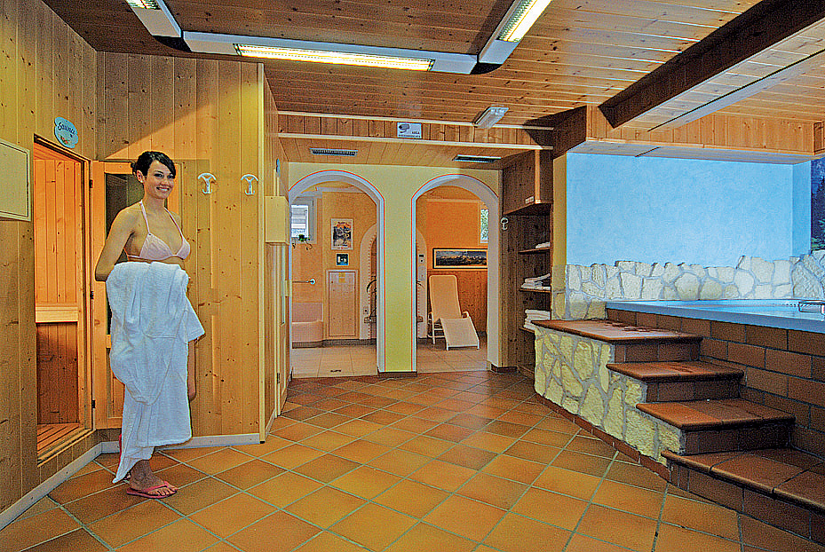 vířivka* až pro 8 osob, 2x sauna*, pára*, multifunkční sprcha*, relaxační koutek s lehátky*, kneippův chodník*, senná lázeň*, posilovací koutek