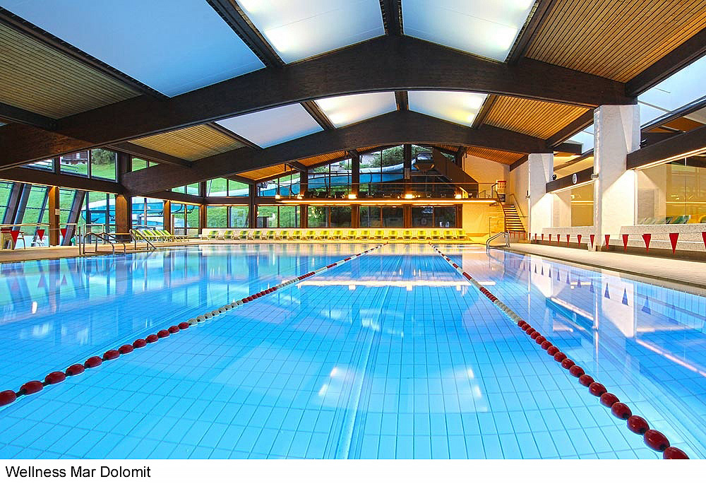 bazénové a saunové centrum Mar Dolomit - Swimming Pool & Sauna - plavecký bazén 25 m, venkovní vyhřívaný bazén s umělým vodopádem, vířivka až pro 6 osob, 4x sauna, 2x pára