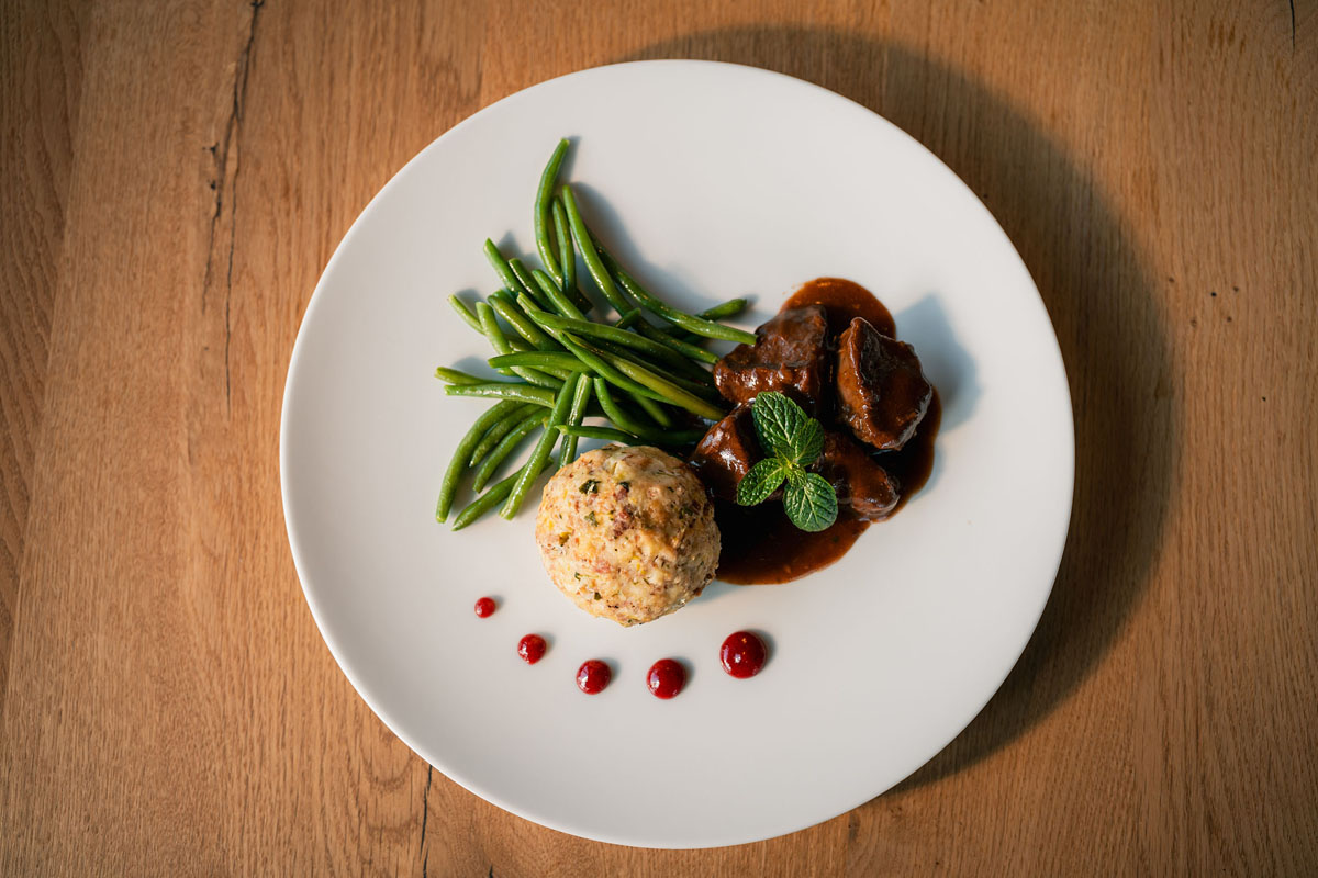 servírované menu s výběrem ze 3 teplých předkrmů a 3 hlavních jídel s přílohou, studené předkrmy, saláty a dezerty formou bufetu, nápoje za poplatek